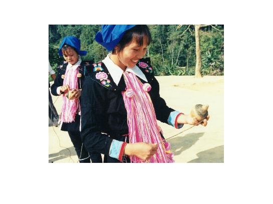 哈尼族妇女胸前掛着一个陀螺