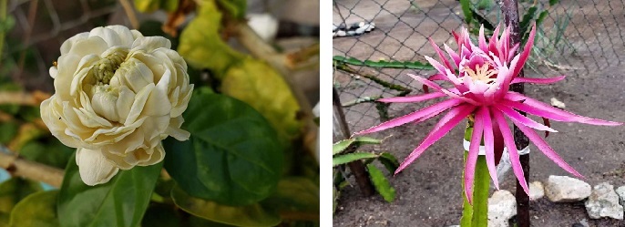 左:茉莉花,右:麒麟果花