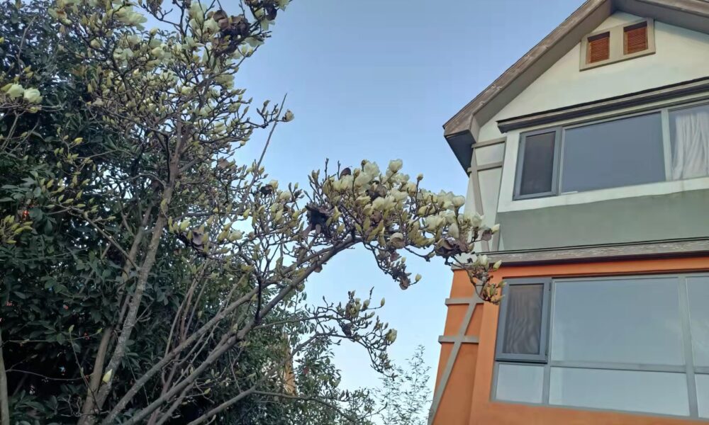 时值三九;岁入隆冬。庭前白玉兰昂首迎天怒放。喜甚。赞其众芳搖落独娉婷之脱俗;千朵含笑齐向天之坦荡。占得一绝,愿与同好者共赏。