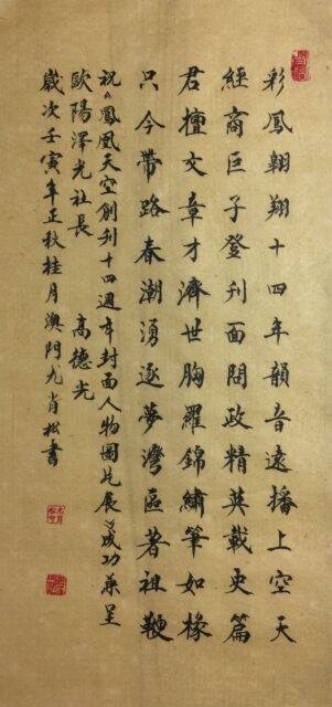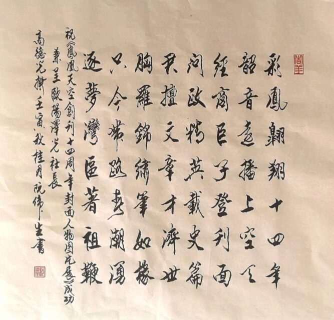 转载请注明:《祝《鳳凰天空創刊十四週年封面人物圖片展》成功兼呈歐陽澤光社長(文/德光,书法/尤端陽,茂松,阮偉生,練子明,尤肖松,黃玉靈,蔡惠瓊)》 复制链接
