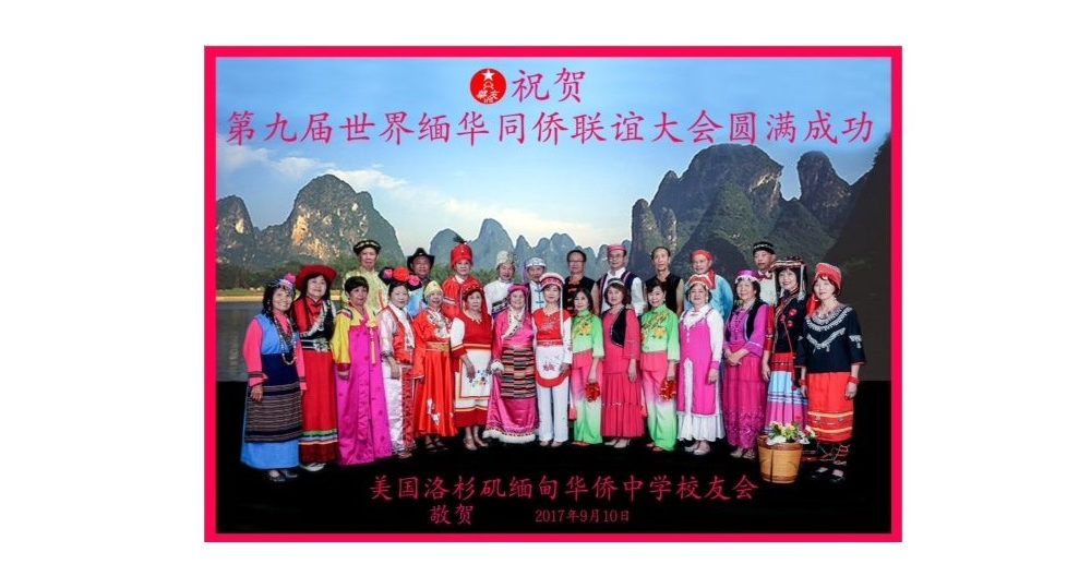 首页/通知通告 /祝贺第九届世界缅华同侨联谊大会圆满成功–美国洛杉矶缅甸华侨中学校友会  敬贺