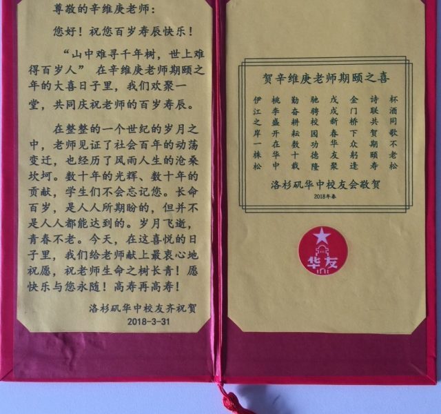转载请注明:《祝贺辛维庚老师百岁华诞 — 洛杉矶华中校友会》 复制链接