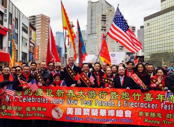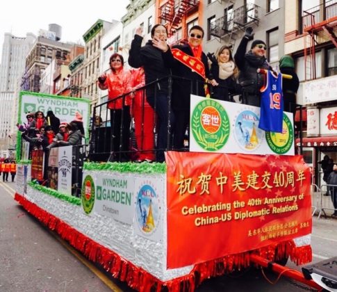 在紐約,今年也是特別的一年,除了既如往年各个僑團舉辨春節晚宴慶賀新年外,在唐人街,從大年初一直至近元宵,間歇的锣鼓之聲不絕於耳,每天都會有大小不同組合的舞龍舞獅隊陸續向商家、店舖拜年祝福。最大亮㸃是在美國繁榮華埠總會主持下,幾十個團體共同舉辦第20屆新春愛心花車大遊行,有七十多个隊伍和十二部大小花車參予遊行活動。