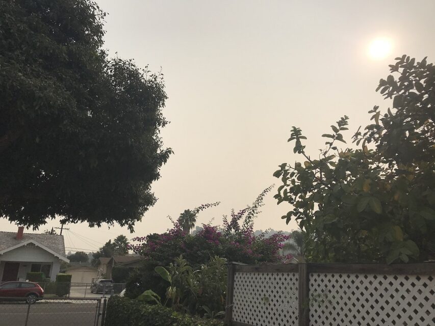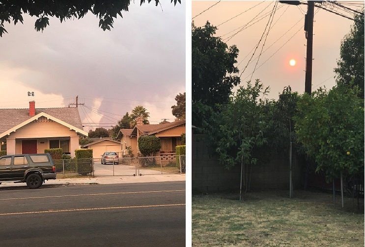9/6/2020傍晚,我在车道散步,看见对面山上浓烟滚滚,抬头望天空,烟云已扩散到我们住区的上空。