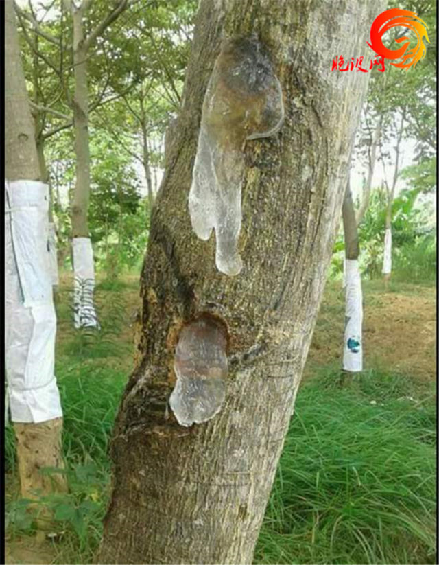 “ 霄飘 ” ( ေလ်ွာ္ ျဖူ ) 植物一般高有50至 90 英尺 ,粗之有 6至 10英尺,是一种热带常年生植物,该树虽喜爱水,但根底不宜积水,否则根会腐烂,栽种后 3至 4年就可剔出树脂,每棵树一天能分泌出 1至 2 缅甲 ( 1缅斤 = 100甲 ;1缅斤= 3斤 左右华斤);1缅斤可以卖60,000至110,000缅元 ( 约合300至500人民币),按它的纯洁度来定。