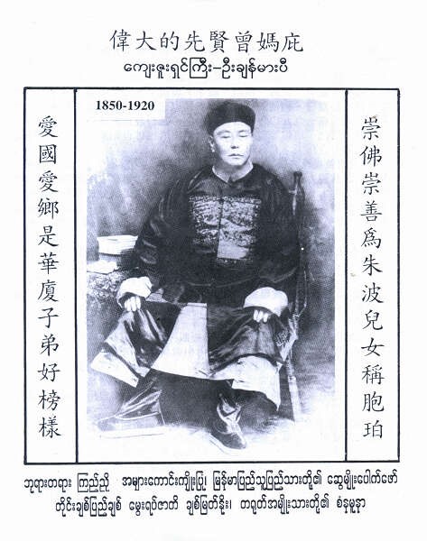 曾广庇(曾妈庇) 19世纪中出生于福建厦门。1861年到马来西亚经商。两年后辗转到缅甸仰光。初时划舢板沿江做买卖,后改营丝绸布匹。10年后改营杂货(以稻米、食油和烟草为主),开设商栈,迅速发迹。因稻米生意关系,他娶德达耶(Dedaye)缅甸农民吴昂巴(U. Aung Ba)的女儿杜埃妙(Daw Aye Mya)为妻。在1894年-1899年间,他是缅甸华人中最大的稻米商和土地拥有者。在仰光建房1000余间,购置田地3000余亩。他乐善好施,1903年捐款在仰光修建福建会馆和曾氏祠堂。还不时捐赠财物救济中国国内灾民。1919年12月捐款10000盾,赞助仰光“中华学校”。1920年7月捐赠座落于仰光西郊九文台(Kemmendine)路591号的洋房一座及地皮一块(价值50万盾),用于建筑“缅甸华侨中学”(Burma Chinese High School)校舍。1920年9月30日逝世。其儿子曾祖慨继承父业,成为缅甸知名侨领,捐10多万盾巨款,兴建仰光大学体育馆。曾妈庇居住过的仰光西郊亚弄区(Ahlone)的一条街,至今称为“曾妈庇街”。[ 友谊·季纽《四个时期的中缅关系》缅甸仰光友谊文学出版社,1976年8月,pp.50-51。]
