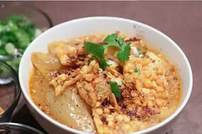 既然说到了早餐,那就不得不提一提另一道缅甸著名早餐小吃,“孟亨嘎”(音译),一种盛在丰盛的鱼汤里的米粉。别小看这一碗鱼汤米粉,这可是缅甸非官方的国菜。
