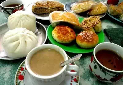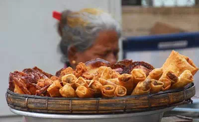大多数在大街上或者茶馆里能找到的小吃——萨莫萨三角饺、春卷、油条、甜点、面包——都是油炸或者煎过的,许多面食上面也有阿恰布,一种油炸的配菜。