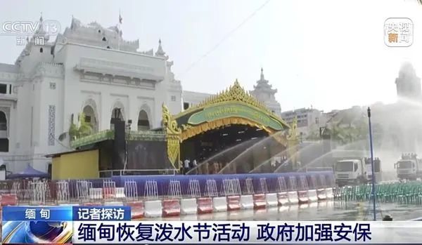总台记者王悦舟:通过我们对此次仰光泼水节活动开幕当天的探访,我们发现参与此次泼水节活动的人数远远低于往年,另外主办方大大提高了这一区域的安保级别,因为就在5天前,距离我现在所处的位置不到100米的地方就发生了一次爆炸,另外在缅甸其他多个省邦的泼水节节活动现场,最近几天也都遭到了爆炸或者是纵火的袭击,因此在这一活动区域的周边有大量的军警值守,同时任何市民要进入这一区域,都需要经过非常严格的安全检查。