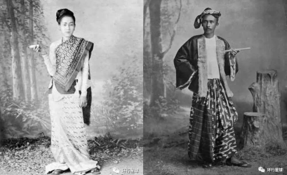 19世纪,缅甸的传统服装: