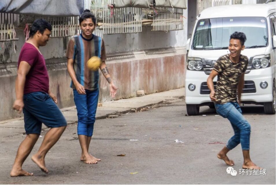 缅甸人将笼基变成短裤进行体育活动