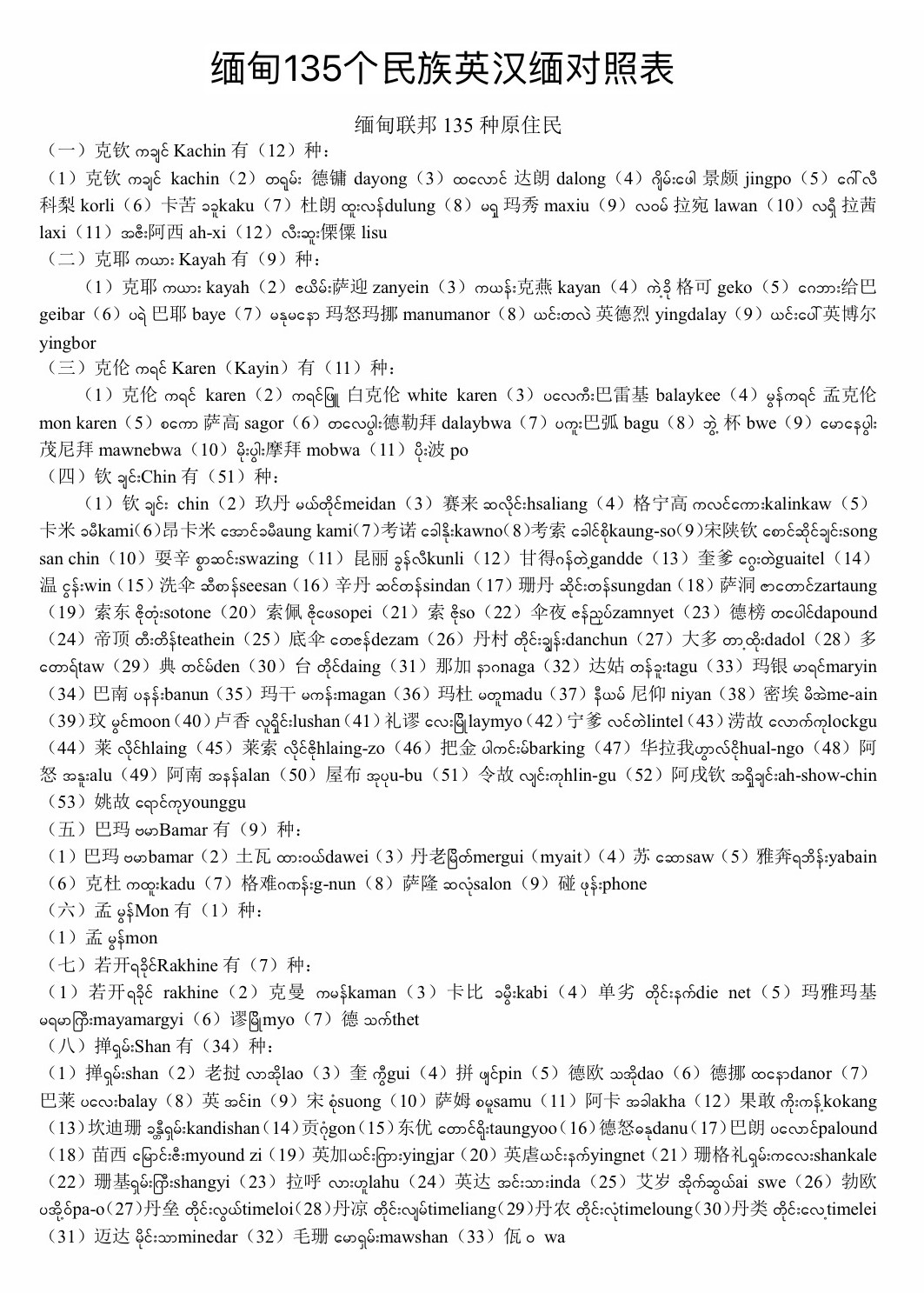 转载请注明:《缅甸135种民族中英缅对照表(linxixing 提供)》 复制链接