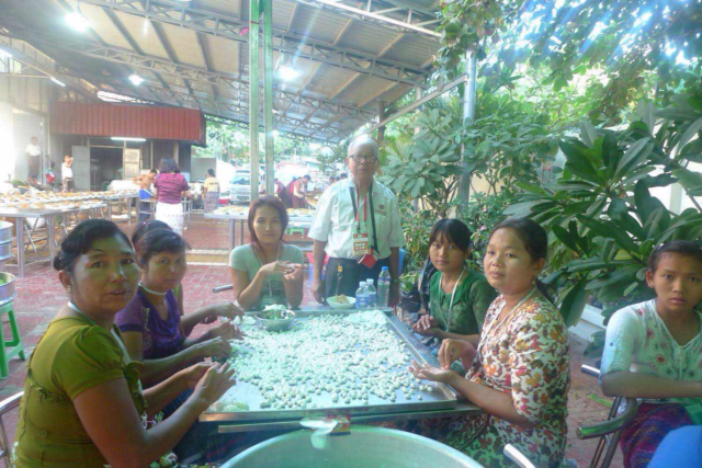 特别一提的是,现场制作,殷情接待的几十位中,青年男女全是当地缅甸朋友。全体参与者视此次缅华活动当着本民族活动,高兴不已,热情参与。其中一对中年夫妇,男主女助,现场烘焙黑糯米粉烤饼(莫毕什勒),火碳烘热了他的身体,他一边操作,一边擦汗,令作者十分感动。充分体现,中缅人民唇齿相依,感情融洽,彼此无间,共庆共乐,其意义非凡,绝对是历届从无的又一个创举。