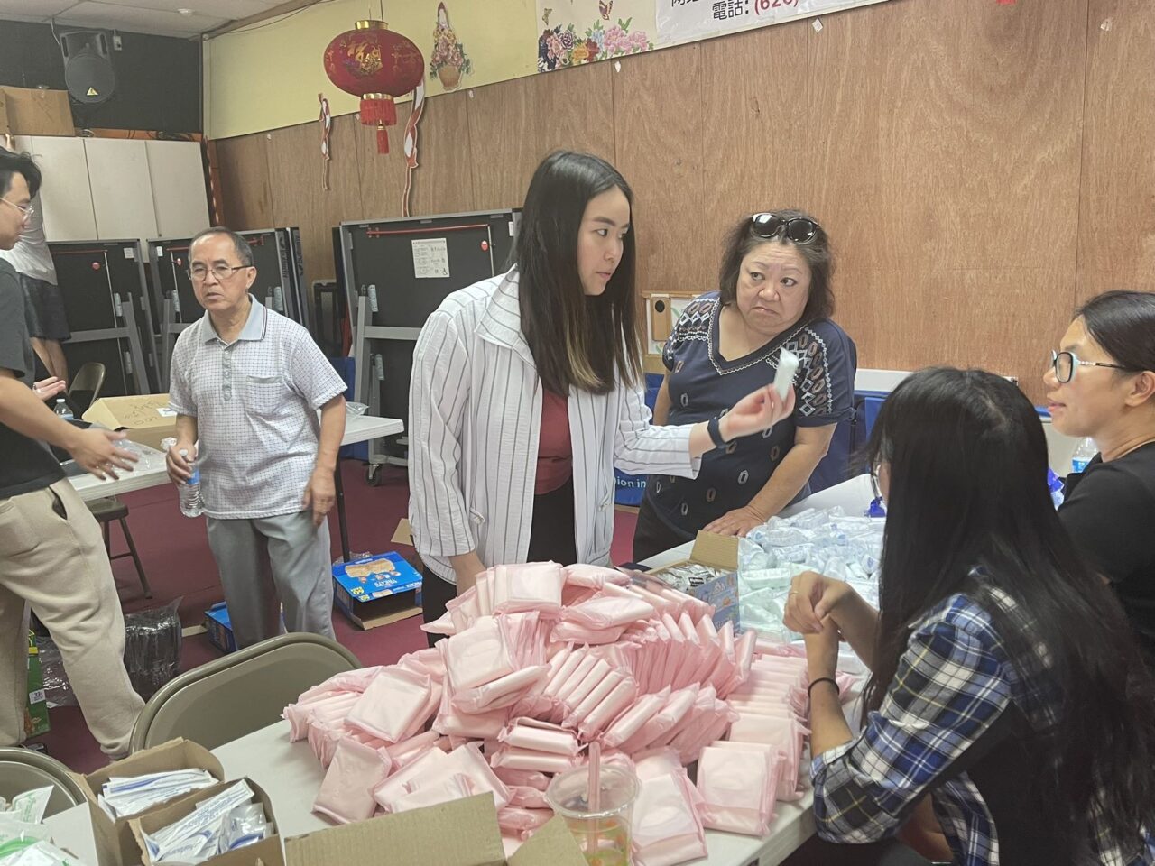 今天來參加活動的年輕人有十五多位,共打包了兩百多份。將會送到洛杉磯救濟無家可歸居民的部門,再由他們來分發。