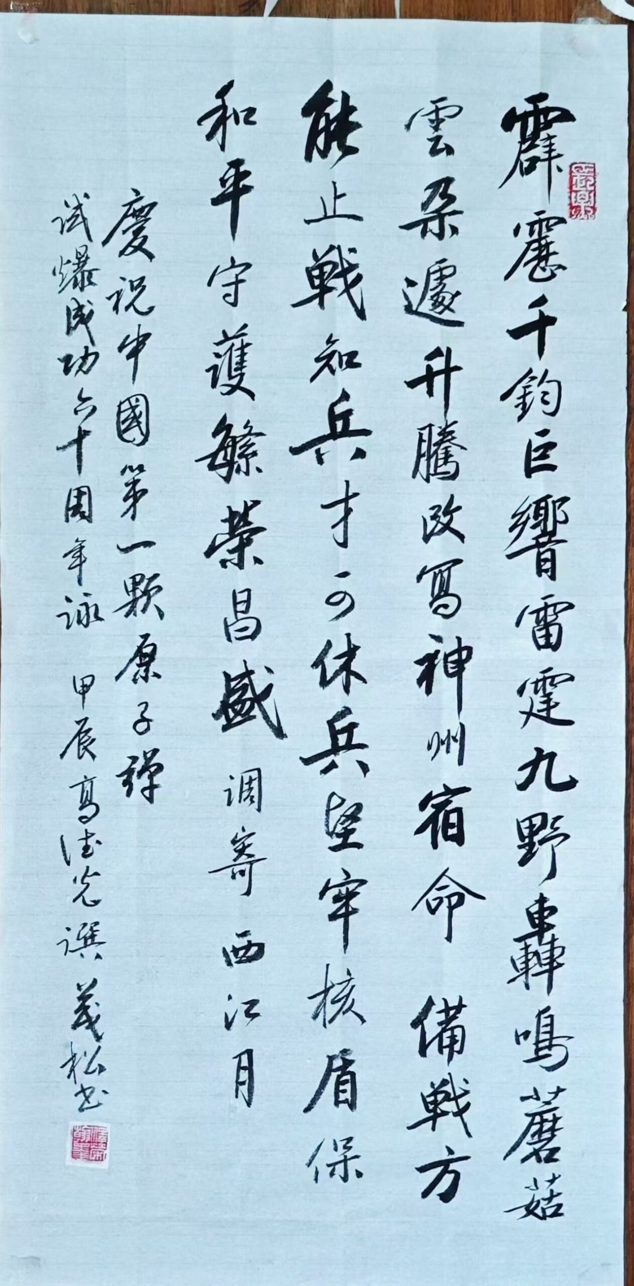 . 復興之路獻嘉謨,軒蓋如雲滙首都。兩會弘開新格局,九州擘劃大藍圖。同商國是輿情奮,共為民生錦繡鋪。議案千條天地換,人間盛世在茲乎! 书法 一〉馮利發二〉李燕軍三〉劉北照四〉茂松五〉周永騰六〉李錦帆七〉羅耀祖八〉李應華九〉莫敬釗十〉黎勝培十一〉阮偉生十二〉岑建平十三〉尤肖松十四〉林德盛 . . . . . . . . . . . . Post...