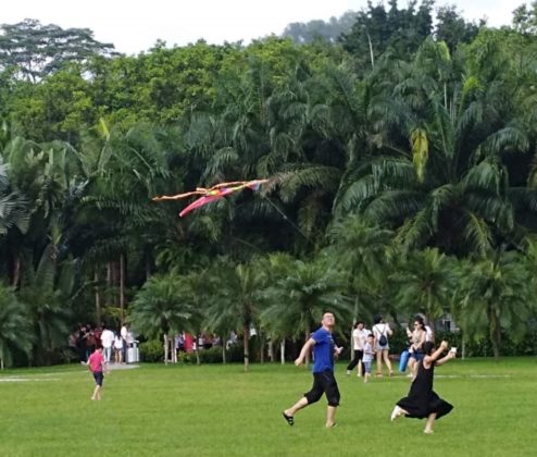 《美丽的西班牙女郎》树叶吹奏曲欢快,激昂地响起。间中,我用“金叶”配合,采用了连音、颤音、单吐和两部轮吹,并在棕榈园里随节拍信步漫行。路人停了下来,放风筝的孩子收了下来,坐在石櫈上的情侣围拢了上来,保安员也走了过来。。。。。。有的用手机拍摄,有的凑近来看看我嘴边的乐器。乐曲刚结束,老艺人就大声说道:再来一首!并低声对我说,您不用交费。
