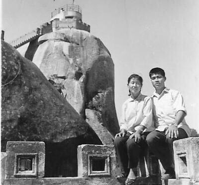 1971年的夏天, 我跟工作单位请了一个多月婚假,回家乡相亲。我们两人一见钟情,在各方乡村友人的见证下,顺利地订了婚。1971年我们在秋意浓浓,丹桂飘香的美丽杭州西湖泛舟,在” 平湖秋月” 亭旁,以天公为证结为连理。用现代的说法,就是“裸婚” 什么婚礼费用都免了。