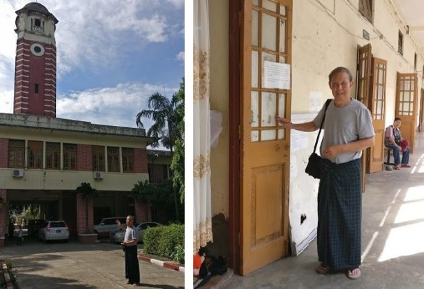 深秋的仰光, 艳陽西斜的一個下午, 我结起沙籠穿上拖鞋, 三步當两步走進母校校園。 抬頭一望, 藍天白雲紅磚鐘楼繪成一景百年不衰的座标.