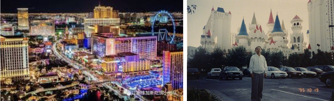 左:拉斯维加斯美丽景色 右:作者首次游玩赌城留影