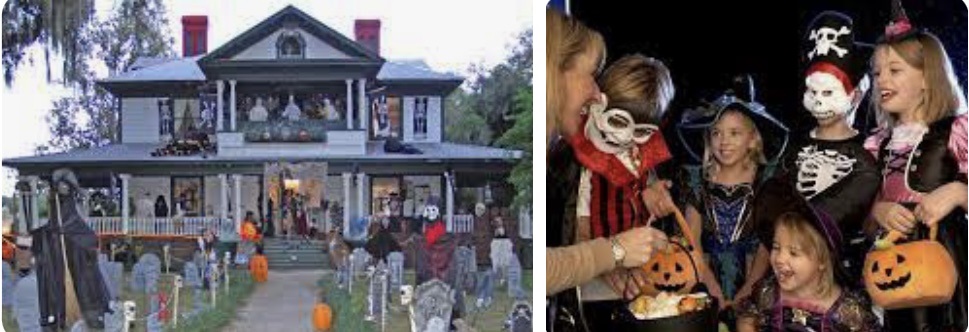 左:万圣节居屋装饰 右:万圣节孩子们登门取糖果