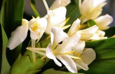 清雅的野姜花,以前在缅甸的时候,我们叫它金花,银花,很美的名字。黄色的叫金花,香味较浓欎。白色的叫银花,香味较清淡。在开花的季节,常常看到缅甸的妇女们把一丛丛的金花或银花戴在髮髻旁。梳得光滑整齐的髮髻配上美丽清香的花朵,是缅甸妇女们的特有打扮。有时走过她们身旁,还会闻到一股花香。