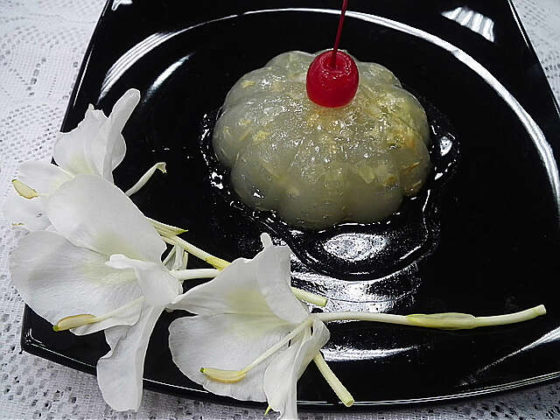野姜花做成的凉果取名为“冰心玉洁”,清凉中带有野姜花香味,让人入口清凉。