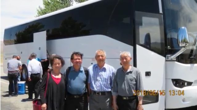 车行驶了两个钟头,驾车师傅停下车,让大家去上洗手间,大家休息了一会儿,就陆续上车。我坐在车位上,突然听到有人喊:“蔡先生跌倒了”我紧张地往窗外一看,看到他被志文扶着走,一跛一拐的走回车上,脸上露出了痛苦不堪的表情,我赶快上前扶他到座位上,他的膝盖摔伤了,而且在流血,手臂也碰伤,这只是皮外伤,最重要的他的腰扭伤了,煜群说是由于踩到了别人丢在路上的香蕉皮而滑倒,那个香蕉皮已经发黑了,根本没法看清楚,这时车上许多热心的校友及朋友们纷纷上前慰问,宝眉立刻拿着止痛药说,这止痛药很好,五、六个钟头消炎后就不痛了。一天只能服一颗。从此,她每天准时送止痛药给煜群服用。秉正校友和碧华校友联络好医生,准备到了Reno要请医生给煜群检查并照X光,天宝校友也拿了一瓶舒筋络的药给煜群,由于煜群带了录相机架子和照相机袋,所以每次上下车都有王旭山贤伉俪、李照顶贤伉俪、谭炳辉贤伉俪帮忙抬上抬下。陈永联贤伉俪在Reno旅馆房间分配在妈妈对面,但是为了让我们方便和妈妈及文弟有照应,特地和我们换房间。少应也拿了冰块帮煜群敷。还有许多写不完的动人事迹事,让我们铭感五中,真正体会到了大家对我们无私的奉献,付出了爱心,真感到无比的温馨和欣慰。