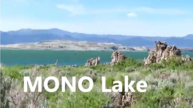 当天下午,大巴士行驶到我们顺道游的莫诺湖(Mono Lake)时,它是位于美国加州优胜美地公园附近,形成于至少七十六万年前因地居偏远。因此湖内留下了大量盐矿,盐度是一般海水的两倍以上。这个莫诺湖是一个不同寻常的生态系统,盐水虾在这些盐水里茁壮成长。它提供于百万的本地鸟与候鸟来筑巢栖息,因为虾是它们的食物来源。