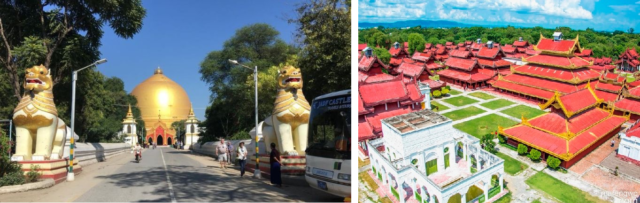 左:实階宝塔彩图 右:曼德勒古都皇宮