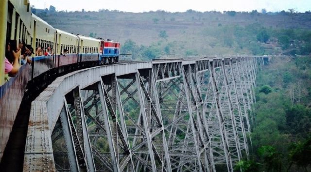 火车穿越贡特大狭谷铁架桥