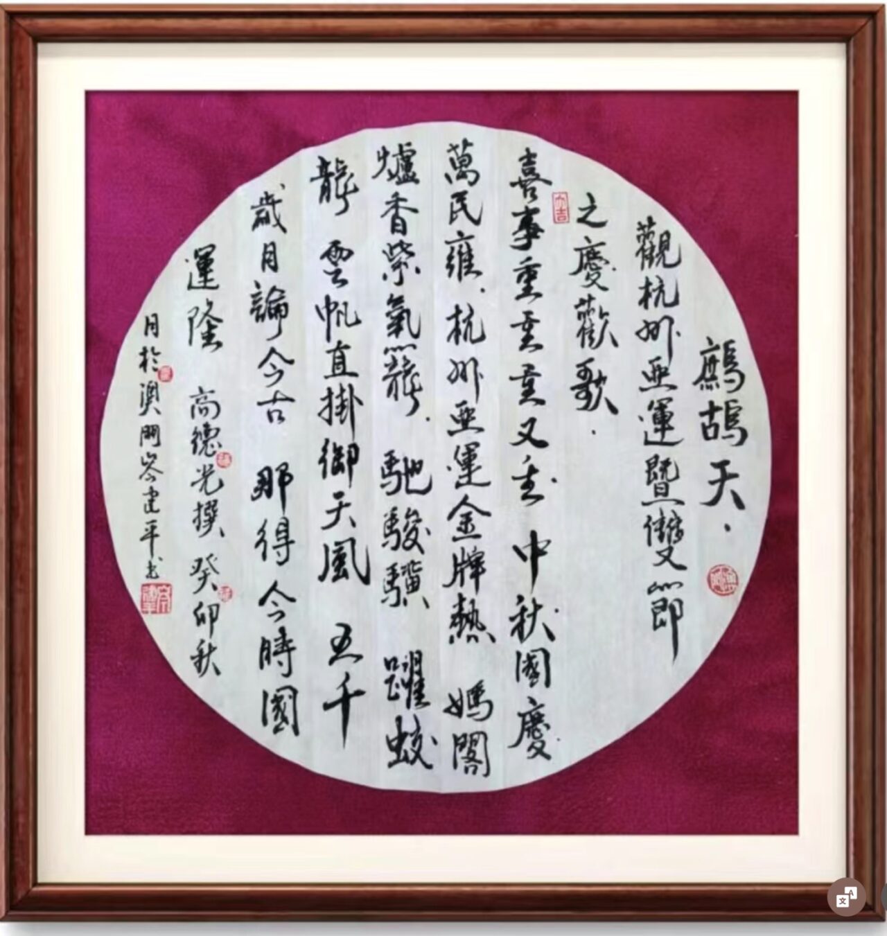. . 華夏文明今古傳, 楚辭漢賦宋唐篇。 濠江薈萃吟風雅, 葡韻悠揚入管絃。 融滙中西相碰撞, 切磋音律共承宣。 好將世界詩歌節, 砥礪騷壇笑比肩。 书法 一〉馮利發 二〉劉北照 三〉茂松 四〉黎勝培 五〉周永騰 六〉吳錦蓮...