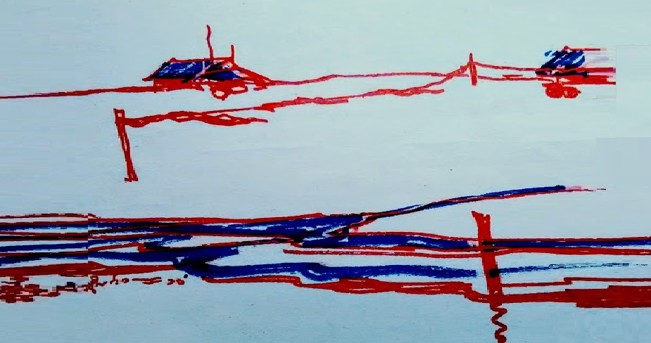 现在两家已同意在这小小沙洲划了畍,滩的那端和这端竖了竹竿,中间用塑料绳为线,绳上绑掛一些塑料袋,风一吹就索索抖动,有些塑料袋已经损裂了。