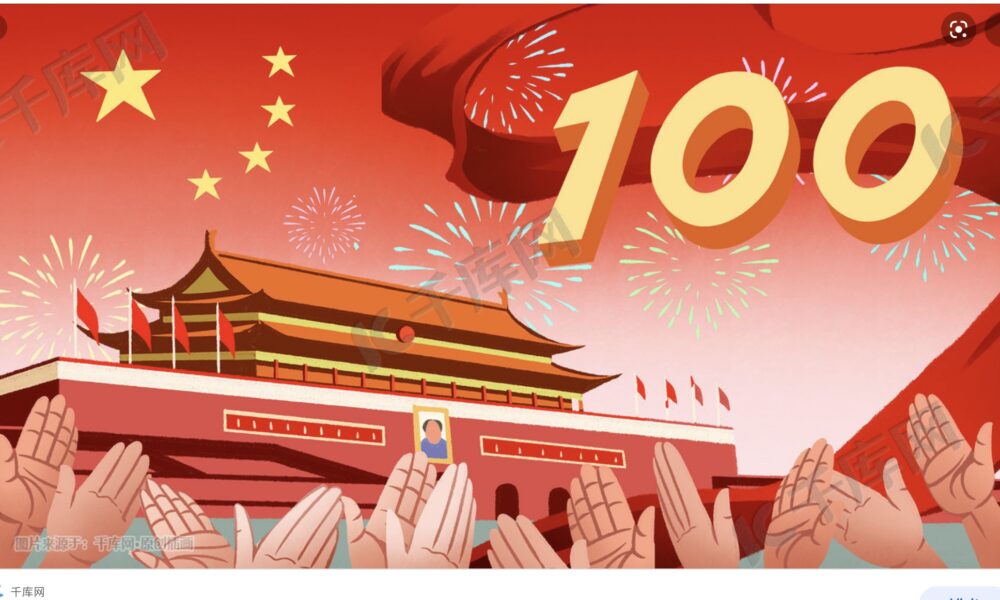 100响礼炮响彻雲霄,祝贺建党百年,意示百年征程伟大胜利。