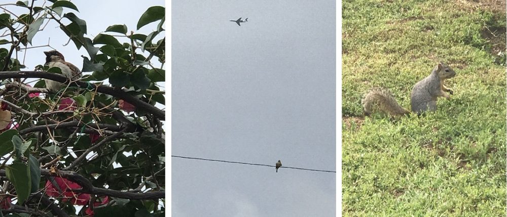 麻雀直接在花棚上栖息,棚下就是构杞树。燕子停在电线上伺机而动,飞机飞过也布惊。