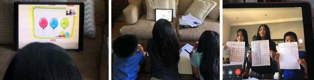 学校都因疫情关闭,家住北加的儿媳想让孩子们抓紧时间学点中文,本来就是吃粉笔生涯的奶奶当仁不让,即时上网找一些入门学习材料,和这些土生土长,不会说中文的小香蕉们一起视频上课,顺便教他们一些简单的会话。比如:小朋友好;奶奶老师好;小朋友再见,谢谢奶奶老师…..等。即让他们学习中文,也联系了婆孙之间的感情,有意又有趣!
