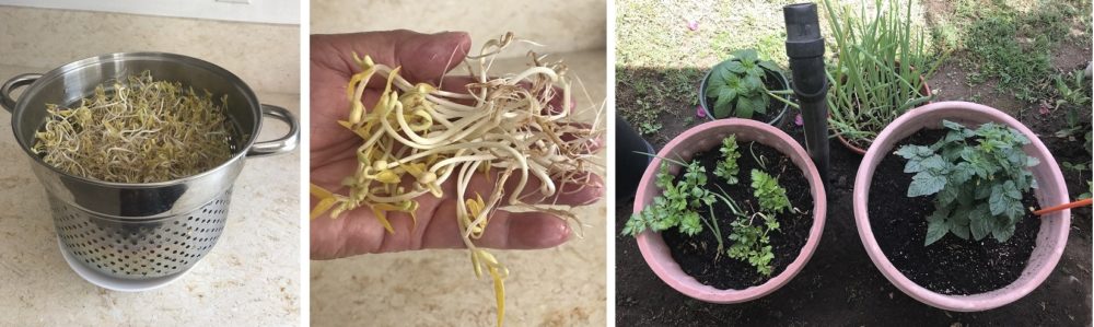 疫情期间,尽量居家防范未然,除了必要时才到市场购买粮食,在家里种养一些简单的蔬菜可收到很好的帮补,解决燃眉之需。第一次学发豆芽,效果还可以。青葱和芹菜可用再生的方法培育。可惜没法买到其它菜种,Home Depot 排长龙,计划暂缓。世界不宁,在后园开发蔬菜区是长久之计。