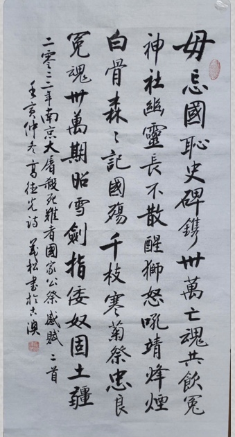 转载请注明:《2022年南京大屠殺死難者國家公祭感賦 二首(文/德光,楊家華,腊戌王胜,耕影,一尘,明宝,騰蛟,涵生,书法/茂松,黄偉華 ,尤肖松,尤端阳)》 复制链接