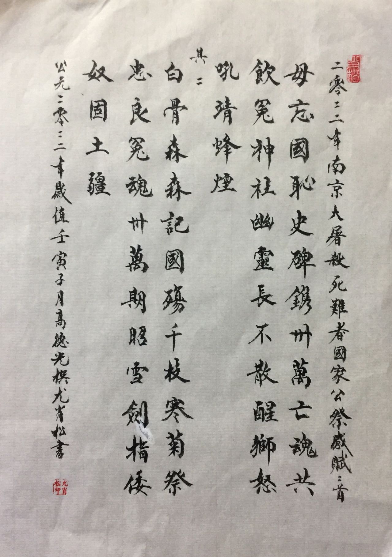 3- 敬赓高德光夫子《南京大屠杀感赋二首》之七阳韵