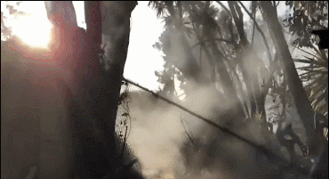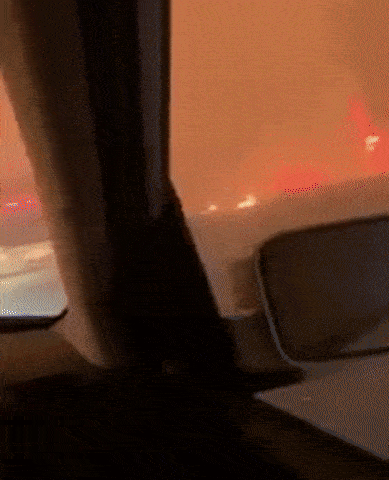 从视频中不难看出,在熊熊烈火中,这个手握镜头的人几乎走投无路,