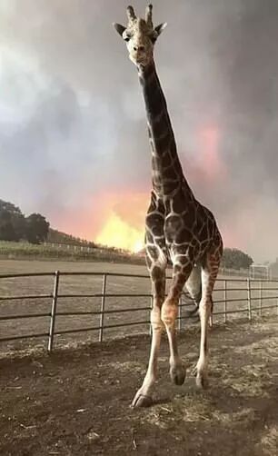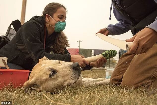在起火的森林周围,人们发现了两只看起来奄奄一息的动物。
