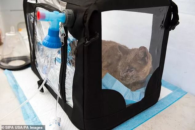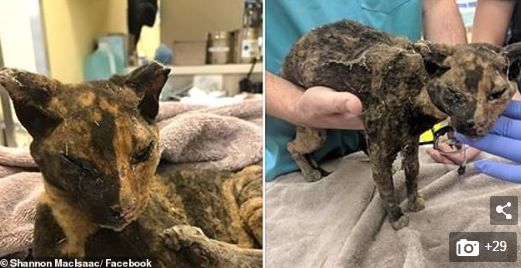 这里猫浑身被烧焦,似乎没有一寸皮肤是完整的,