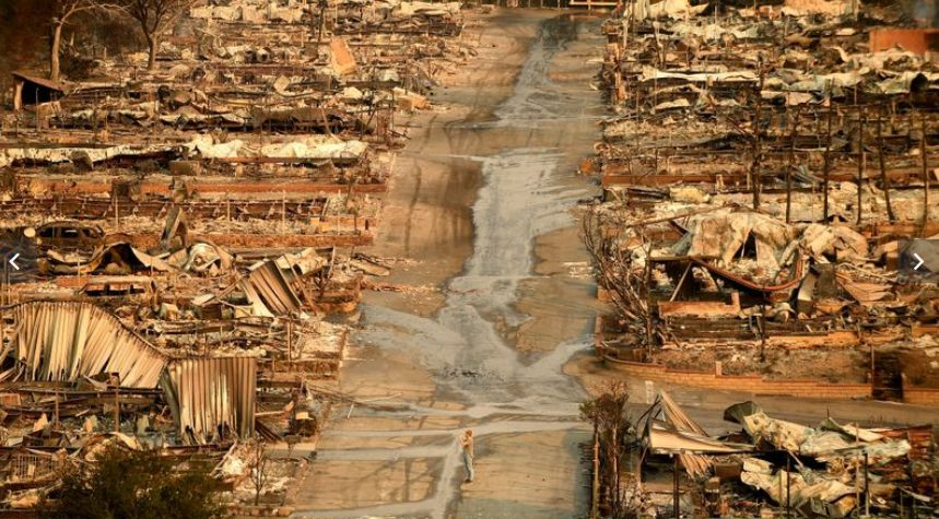 疯狂蔓延的烈火摧毁了天堂镇6453户居民的房屋及260处商业建筑,