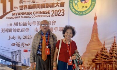 曼德勒同侨大会闭幕式晚宴现场留影(2017) 纽约第11届缅华同侨联谊大会闭幕典礼于7-9-2023晚顺利举行,完美收场。至此,为期三天的同侨大会全部结束,戏终人散。留下美好的回忆之余,代表们口口声声祈望,2025年台湾第12届缅华同侨联谊大会能够顺利召开,大家到时别后重逢。 回眸世界缅华同侨大会,从2000年元月首届澳门缅华同侨大会,到2023年7月第11届同侨大会,23年内平均2年举办一次。作者从65岁到85岁,20年内有幸参加了第三,四,五,七,九,11届,前后共计六届。 左:作者夫妇与三藩巿代表团留影 右:作者夫妇与纽约南友留影 历次参加同侨大会,作者满怀激情,从开幕式到闭幕式,有的代表往往放弃一些小活动,作者则经历所有活动项目。特别是香港第四届同侨大会,因为作者在那里工作和生活11年,首都仰光第七届同侨大会,古都曼德勒第九届同侨大会,因为是自己生长的第二故乡,作者不但全程出席,並且书写了多篇文章,做了详细的报道。 其中印象最深的是每次大会均能见到德高望重的朝气蓬勃的长生不老的粟秀玉老师。香港大会的时候参加南中校友聚会,(月琴参加华中校友聚会)。仰光大会的时候参加仰光南友会欢迎外地南友一起欢度中秋节茶会。 左:作者夫妇闭幕式晚宴留影 右:作者与卢金菊闭幕式晚宴留影 每一届同侨大会,头一天开幕式,从早到晚,各地与会代表们,尽情欢乐,兴奋不已。然而,到了闭幕式晚宴,除了尽情欢乐,场面达到最高潮,大家不免依依不舍,心怀伤感。印象最深的是2017年曼德里第9届世界缅华同侨大会闭幕式晚宴,舞台上莺歌燕舞,舞台下观众席旁,有些代表,演员,红衣青服工作人员,不约而同,围成圆圈,载歌载舞,忘了时空,忘了人生烦恼。 跳了一阵后,我走到粟福祥老师,黎天宝学弟,林碧华張少应夫妇所在餐桌,刚从舞台上下来的朱徐佳也走过来,张少应倒红酒大家一次又一次碰杯痛饮。此时眼见栗秀玉老师出现在舞台上,手握话筒,高唱缅甸农村民歌,歌声掌声欢呼声融为一体。想到明天就要惜别热情无比的曼德里同侨们,心中不免有些伤感。 纽约代表团闭幕式晚宴留影 纽约第11届缅华同侨大会闭幕式于9号晚在君豪大酒店隆重举行,在宽阔的大厅里,一个个水晶灯照射下,显得格外明亮,舞台背后悬掛着耀眼的纽约缅华联谊会会徽,有中,美,缅三国国旗。舞台上摆放着同侨大会地球仪会徽,围绕着舞台前的空地,布置着约三十张餐桌,当地官员,本地代表和外地代表齐齐就坐,桌无虚位。来宾或是成双成对,或是三五成群,纷纷争占好位,拍影留念。 约晚7点,闭幕式晚宴主持宣布晚会开始,大会主席苏烦光先生笑容满面,热情洋溢地致欢送词,感谢各地代表踊跃参加第11届缅华同侨大会各项活动,感谢纽约市各团体组织大力协同,努力办好此次大会各项工作。预祝2025年台湾第12届世界缅华同侨大会顺利召开。 苏焕光主席向各地代表团赠送纪念金状 苏主席亲自向各代表团赠送纪念品。各代表团团长也纷纷上台致词,赞扬主办单位纽约缅华联谊会成功举办此次大会,感谢主办单位机场迎接,住宿安排,参观景点,餐饮招待,多次赠送纪念礼品。 苏主席邀请嘉宾,各地代表和当地代表上台一起集体留影。邀请台湾代表团上台,在创办单位澳门代表团的见证下,苏主席将同侨大会会徽和会旗转交给台湾代表团。 ...