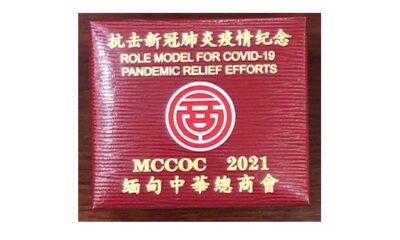 文/胡盛廷(泰国) 去年新冠肺炎灾魔肆孽,瘟疫忽殃,缅甸中华总商会引领全缅甸华人华侨、各省籍同乡会馆、行业联盟、社会名人,齐心抗疫,急速引进新冠疫苗。众多医生护士和志愿者,仁心情注,苦以忘此,临危犹且,抗疫取得了巨大的成功。缅甸中华总商会特制纯金金牌,颁发纪念奖章,奖励有功人士。余愧赧一枚,特赋诗七律。 去岁新冠染万家, 华商防疫任堪夸。 引苗百绪倾心血, 求府千难扮脸霞。 傩鼓隆隆驱鬼疾, 金牌灿灿奖员嘉。 湄河伊水同云雾, 协济些微也佩花。 . 恭和胡盛廷七律·获缅甸中华总商会金牌徽 晨阳(厦门) 慷慨支援二故家, 解囊捐款世堪夸。 疫苗千种神州绝, 唯有亲人露脸霞。...
