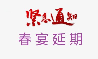 由于新型肺炎疫情的原因,不适合举办大型聚会。 为了大家的安全考量,董事会决定,本会原定2/8/2020(星期六)的鼠年春宴联欢晚会延期, 何时举行再另行通知。 南加州缅华联谊会 秘书处启 = = = = = = = = = =...