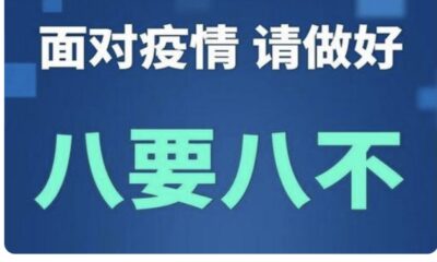 编者按: 连日来,全国多地新增本土确诊病例,警钟再次敲响,风险就在身边。面对疫情的反复,我们该如何应对? 牢记这防疫八要八不,人人不懈怠,处处不放松! -1- 要尽早接种疫苗 不听信谣言疑神疑鬼 -2- 要坚持佩戴口罩 不放松警惕心生懈怠 -3- 要切实减少聚集 不忽视保持安全距离 -4- 要倡导公筷公勺 不忽视细节因小失大 -5- 要尽量避免出境...