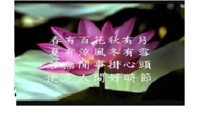 春有百花秋有月, 夏有涼風冬有雪。 若無閒事掛心頭, 便是人間好時節。 文/釋如睿 「春有百花秋有月,夏有涼風冬有雪;若無閒事掛心頭,便是人間好時節。」這首詩偈是宋朝無門慧開禪師所寫,意思是說,春天有百花綻放,秋天月亮特別皎潔,夏天吹拂著徐徐涼風,冬天飄著皚皚白雪;春夏秋冬四季分明更替,猶如我們生老病死的過程。倘若我們能將生老病死的變異、榮辱得失的好壞,都不掛在心頭,即是人間最好的時節了。 人生真正的快樂,不是家有萬貫,子孫滿堂,而是心中擁有智慧,心無罣礙。譬如:人走過鏡子,其影像是不可能停留在鏡中。相同地,快樂的事也好,感傷的事也罷,只要是「事過則境遷」,如人過鏡,不再重現。 凡夫如我,憶起初入佛門之際,常對周邊的毀譽,甚為罣礙,久久無法釋懷。當別人讚歎我時,則感到信心遽增,歡喜至極;當別人誤會我、毀謗我時,則感到傷心欲絕;心情起伏,經常隨他人的毀譽而此起彼落。當讀到這首偈語時,猶如甘露灌頂、如暗遇明、如釋重負、如貧人得寶、心開意解。我的世界也由愁雲密佈,轉為晴空萬里。從此,不再看別人的臉色過日子,不再活於毀譽中,內心的法喜無與倫比,更印證佛法中「一切唯心,萬法唯識」這句話了。 聰明的人兒,莫讓這些貪瞋癡、憂悲苦惱的影像滯留在我們清淨的明鏡中,若垢已存,則速速拂拭,心鏡清明,智慧必能顯露。 然而,如能修心做起,心無罣礙,就能感受到世界的美好,如此心好、事好、環境好,無一不好時,便是人間好時節了。 ...