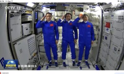 神舟擊浪渡銀河, 百日征程奏凱歌。 浩瀚星穹曾漫步, 往來天地任穿梭。 長空築夢懷鴻鵠, 上國爭雄媲美俄。 今日賦歸三傑士, 龍騰六合展高科。...