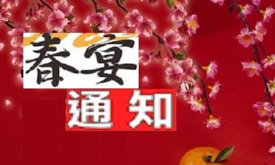 兹为庆祝鼠年春节暨元宵佳节,订於公元二0二O年二月八日下午六时,假888海鲜大酒家举行庆祝联欢晚宴。仅此奉知,敬請踊跃参加。 春宴筹備小组 敬啓 总负责人:吕良奇/陈永联 (1) 春宴联欢会举行日期/時间:(Date & Time) 2020年02月08日(星期六),下午6:00pm。 (2) 地点:(Location) “888海鲜大酒家”(888 Sea Food Restaurant) 8450 Valley...
