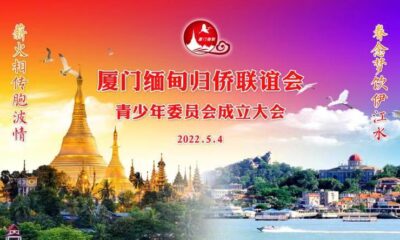 壬寅年适値五四青年节及中国共青团成立一百年华诞之际,厦门缅甸归侨联谊会青少年委员会(以下简称青委会)正式成立了。 青委会成立大会假厦门华侨大酒店举行。根据卫健委疫情防控要求人数控制在50人内,厦门市侨联林中英副主席、基层工作部二级调研员朱长虎;各区侨联主席(除因身体欠安外)陈群英(集美区)、林一亭(同安区)、黄秋霞(海沧区)、朱延望(翔安区)、魏剑(思明区侨联青委会会长)、缅联会部分常务理事及青少年委员会会员共40人与会会前合影留念。 大会在肃立齐唱庄严的《中华人民共和国国歌》歌声中开幕。首先由青委会副会长兼秘书长陈伯延宣读《青委会章程》并提交大会与会人员审议、表决通过;由缅联会副会长陈婉映宣布青委会常委会9人候选人名单介绍,经事前线上投票及大会审议通过,选举杨锦强任青委会会长;胡纵横任副会长;陈伯延任副会长兼秘书长;周华杰任副秘书长;郑伟鹏任文体部长、杜翠丽任文体部副部长;曾素琼任联络部长;黄蔚任财务部长;李立云任网络部长。 接着由市侨联林中英副主席与缅联会陈汀阳会长授《胞波薪火》会旗并与常委会成员合影;新当选的青委会会长杨锦强及副会长胡纵横分别致辞表示,青委会将积极服务和融入新发展格局,助推高质量发展超越,为更高水平建设高素质高颜值现代化国际化城市贡献微薄力量,以实际行动迎接党的二十大胜利召开。 要把青委会建设成为学习型的队伍,把厦门缅联会青少年委员会办成厦门缅甸归侨侨眷、侨属之“家”,同时要发扬缅甸华侨华人、归侨老一辈爱国爱乡、无私奉献的传统,发挥缅联会青委会的人才与智力优势,代代薪火相传下去。 缅联会会长陈汀阳致辞说,作为缅甸归侨侨眷、侨属的年青一代,传承、薪火相传纯洁的胞波情,广泛联络缅甸华侨华人及社团,激发爱国爱乡的热忱,促进和发展中缅人民友谊,责无旁贷。年青的胞波们要积极行动起来,组织起来,活跃起来,凝聚侨心侨力,为中华民族伟大复兴的中国梦,踔厉奋发,笃行不怠! 而后,思明区侨联青委会会长魏剑与侨青、书法作者吴毅飞向缅联会青委会赠送了《薪火相传 接续奋进》的祝贺书法作品。 市侨联林中英副主席讲话,对新当选的各位成员表示祝贺,对缅联会理事会在青委会成立中给予关心和大力支持表示感谢。同时,也希望青委会站在新起点上,面对当前新侨情、新形势。一方面要更多地团结和联系好广大侨友,另一方面要继续搭建好缅华同侨友谊桥梁,加强与海内外缅甸“胞波”交流联络互动和在厦缅甸留学生的联系。更要发挥好成员相对年轻的优势,继续做好发展吸纳年轻会员的工作。 大会在男声小组唱《爱拼才会赢》、《我和我的祖国》的歌声中圆满落幕。...